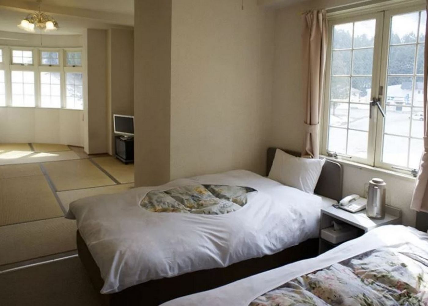With a combination of Western-Japanese rooms (Tatami floors with Western beds and ensuite), and full Western rooms, Sun Valley offers a comfortable stay for everyone. The Hotel also has a restaurant and bar situated on the first floor, specialising in quality Japanese-European dining with an 'all you can eat' option. With the children's ski slopes and 'Family Land' only a short walk away, Sun Valley is a great place to take small children, and the facilities also cater for the young ones.