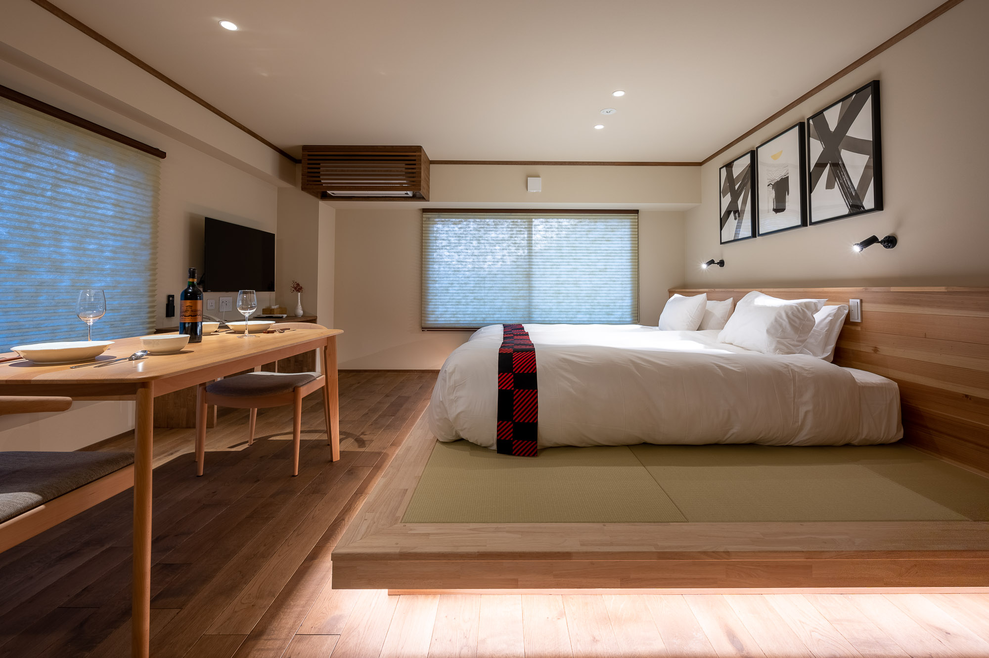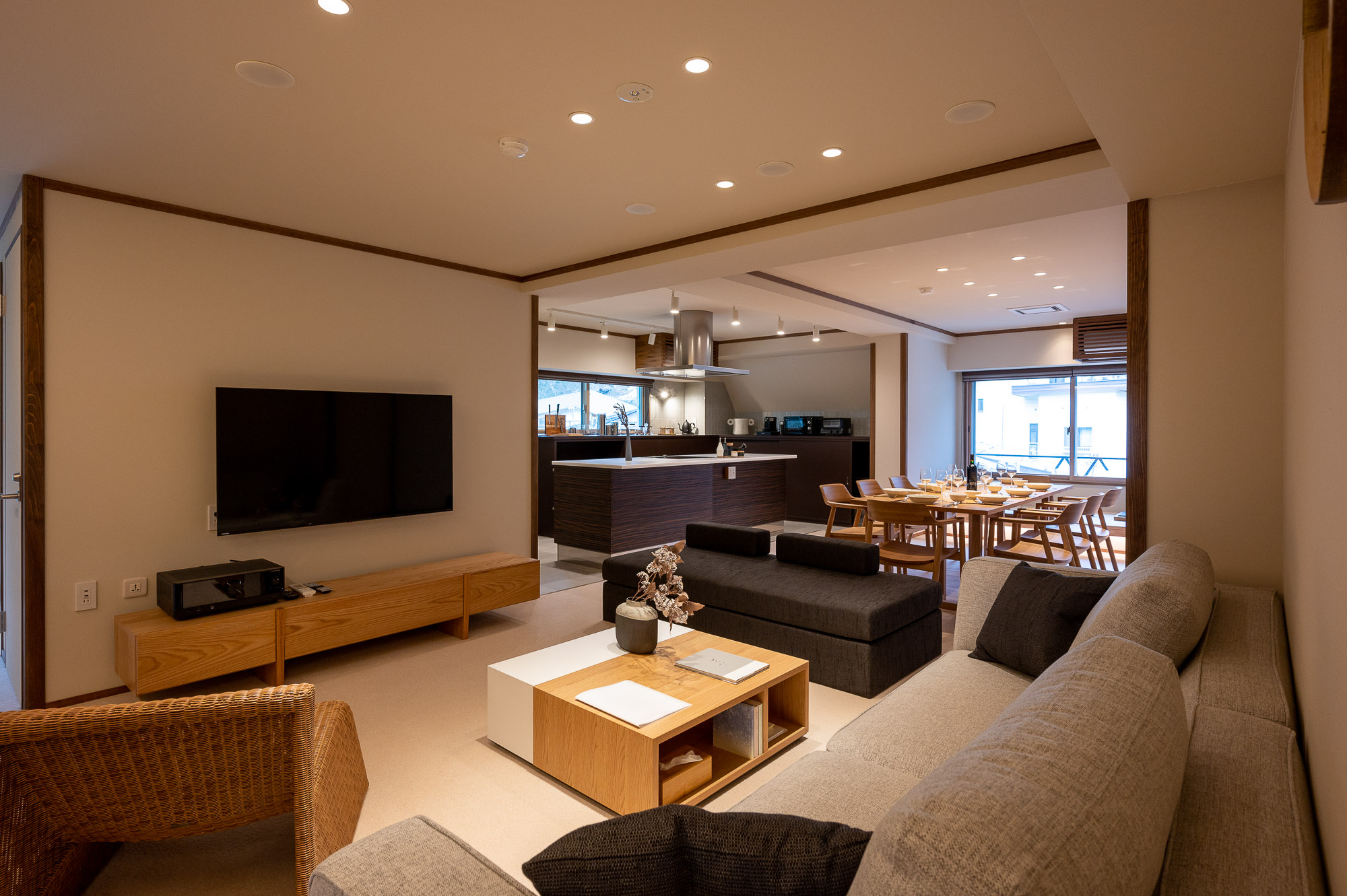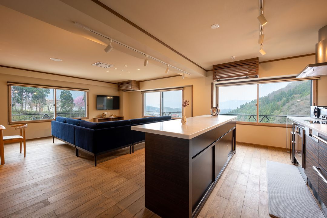 Kawamatoya Nozawa is a newly renovated apartment complex whose previous life was a traditional Japanese Ryokan which has a history dating back over 100 years. Now a modern, luxurious, but unmistakably Japanese experience. Kawamotoya offers unmatched views of the mountain or the valley below. Kawamatoya is a boutique complex with facilities that include onsens, café, gymnasium, a theatre room, a roof top BBQ deck for summer, a laundry with washer and dryers and a concierge front desk to assist with all your needs.